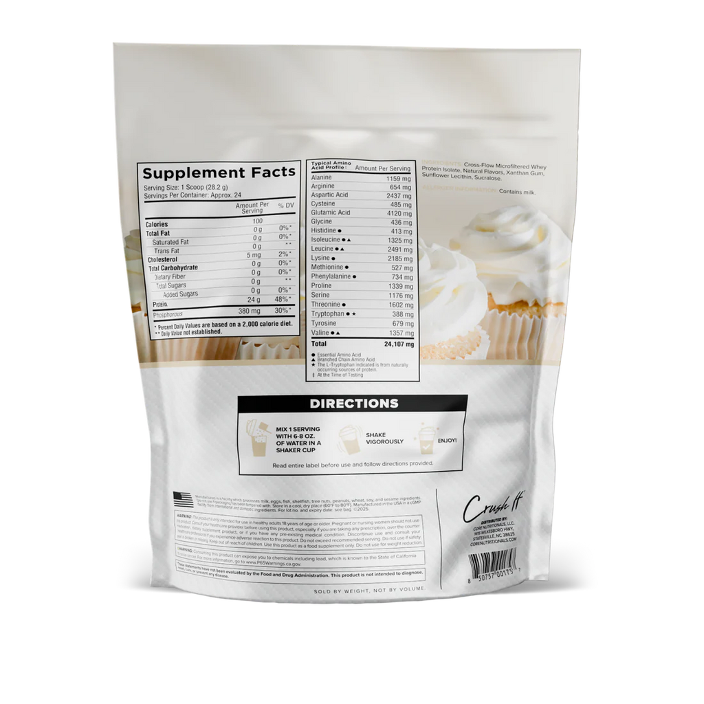 Core ISO uses whey protein isolate (WPI), the gold standard for protein. It focuses on purity, quality, and taste. Each serving is one scoop; there are 32 servings per container. The formula uses non-GMO, non-soy, non-instantiated WPI with no added sugars and no artificial colors, making it a versatile option for post-workout or anytime protein needs. Many isolates are amino-spiked or diluted; Core ISO avoids those practices to deliver what you expect from a true isolate. Natural flavoring smooths WPI’s usual bitterness, so shakes taste like a treat without compromising macros. If you already use protein, Core ISO offers a cleaner, high-purity version of the standard that supports recovery, lean muscle goals, and everyday nutrition with reliable consistency and convenience.