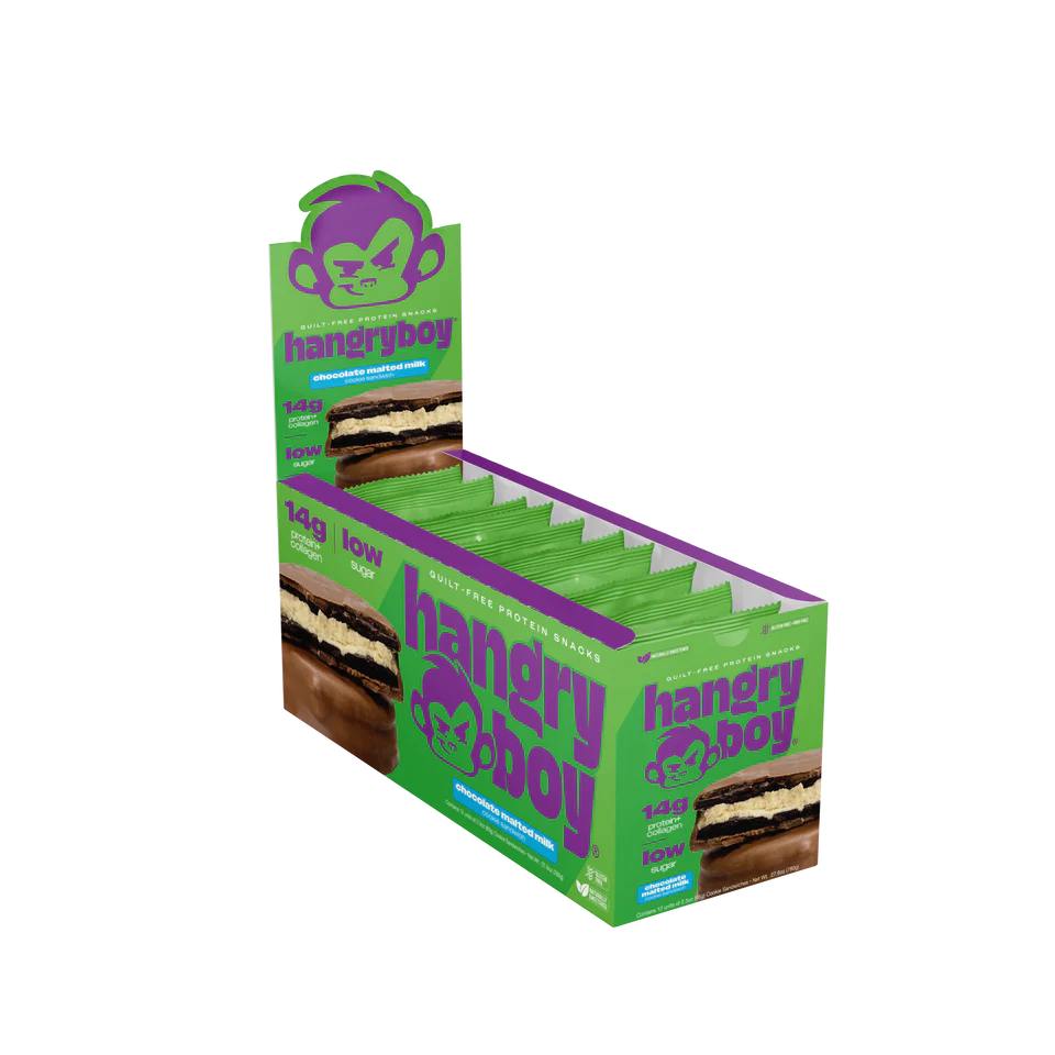 Hangry Boy high-protein, low-sugar snack that actually tastes like a treat! Oven baked cookies with a creamy filling come together for the ultimate guilt-free indulgence. Whether it’s post-workout, mid-day cravings, or a late-night snack attack, Hangryboy has your back.